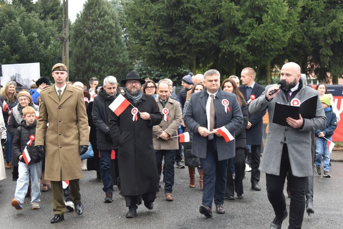 Msza święta została odprawiona w kościele pw. św. Apostołów Piotra i Pawła. Po Eucharystii mieszkańcy, przedstawiciele władz i delegacje organizacji przeszli w historycznym pochodzie pod Obelisk Niepodległości. Tam wspólnie odśpiewano „Mazurek Dąbrowskiego”, a delegacje złożyły wieńce, oddając hołd bohaterom walk o wolność Polski w 107. rocznicę odzyskania niepodległości.