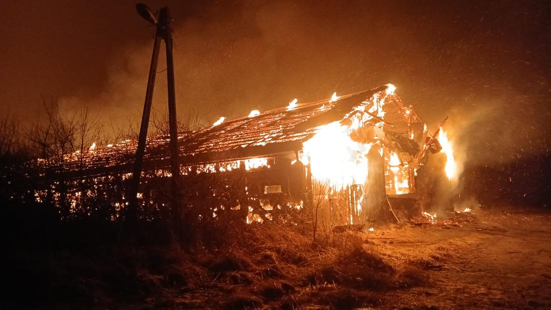 Zgłoszenie wpłynęło około godziny 1.30. Po przybyciu pierwszych zastępów straży pożarnej okazało się, że budynek w całości objęty jest płomieniami. W środku znajdowało się kilkadziesiąt balotów słomy, co sprzyjało szybkiemu rozwojowi ognia i dodatkowo utrudniało prowadzenie akcji gaśniczej.