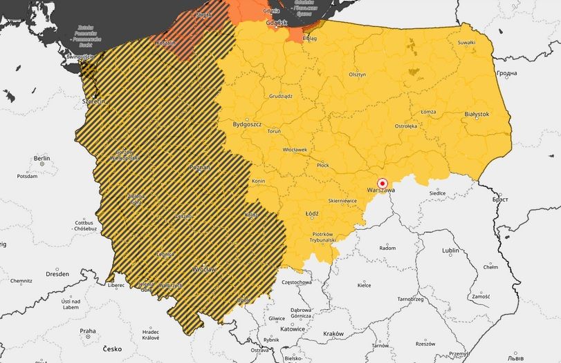 Synoptycy IMGW prognozują wystąpienie silnego wiatru o średniej prędkości do 40 km/h, w porywach do 75 km/h, z południowego zachodu i zachodu.
