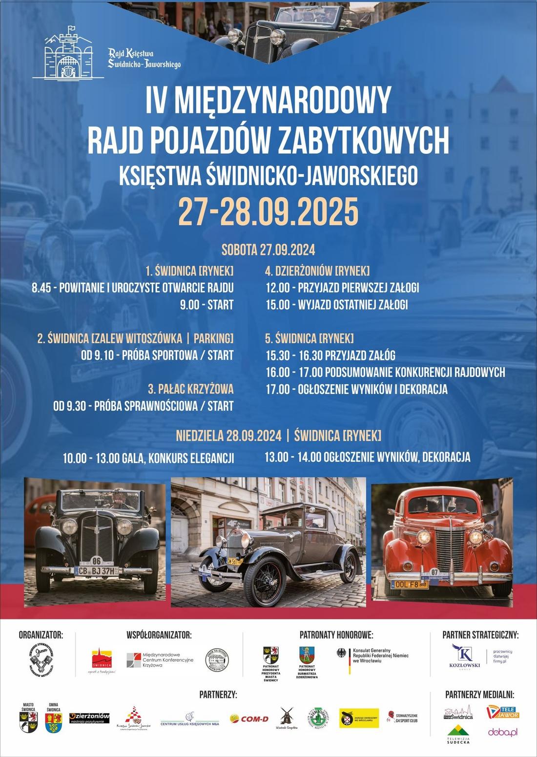 Świdnica ponownie stanie się miejscem spotkania miłośników klasycznych aut i motocykli. W sobotę, 27 września, na świdnickim Rynku pojawią się uczestnicy IV Międzynarodowego Rajdu Pojazdów Zabytkowych „Księstwo Świdnicko-Jaworskie”. Już od godziny 8.00 będzie można podziwiać wyjątkowe pojazdy, a o godzinie 9.00 zaplanowano oficjalny start rajdu.