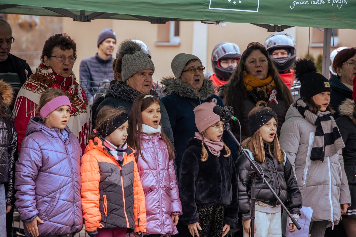 Przydźwiękach hymnu wciągnięto na masz biało-czerwoną flagę. A przed zgromadzonymi wystąpili młodzi artyści z Dziecięcego Zespołu Wokalnego B+CK „Nutki Kawki”. W tle słychać było głośny ryk silników to Czarnoborska Grupa Motocyklowa uczciła 107. rocznicę odzyskanie niepodległości przez Polskę.