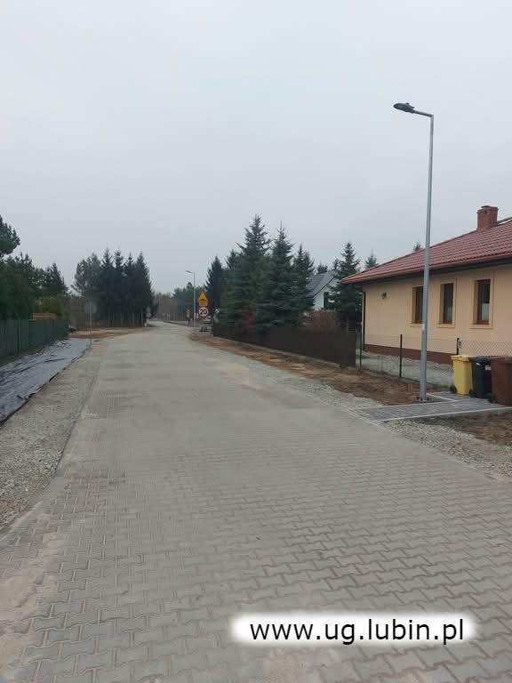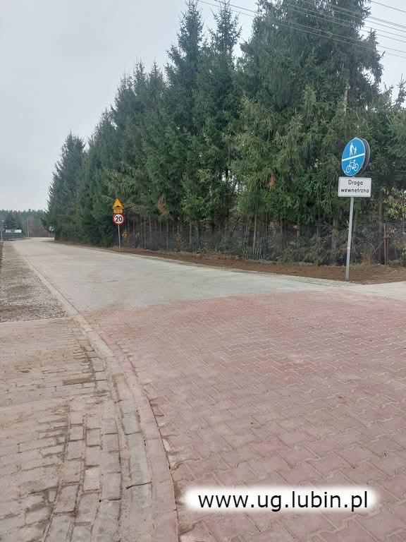 W ramach prac przebudowano również nawierzchnię ulicy Sosnowej na odcinku od miejsca nowo powstałej drogi wewnętrznej do miejscowej kapliczki. Zmieniono organizację ruchu, zamontowano też progi zwalniające.