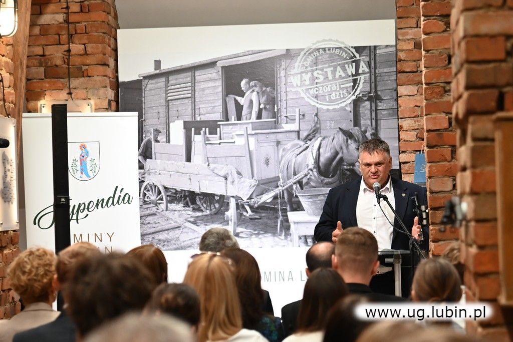 Uroczystość wręczania stypendiów zorganizowano w sali wystawowej Ośrodka Kultury Gminy Lubin.