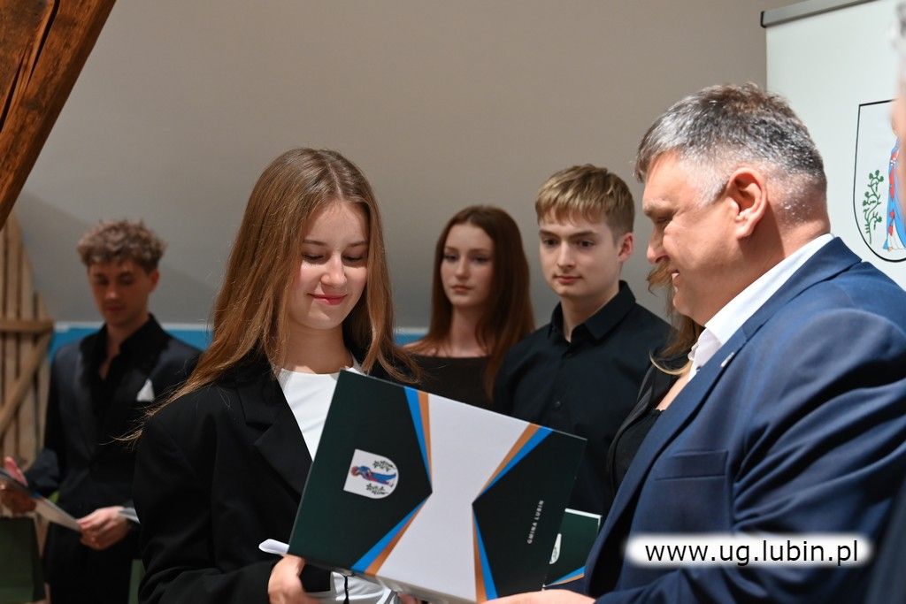 Podziękowania wójta powędrowały również do rodziców i nauczycieli, którzy towarzyszą młodym ludziom w ich drodze. Sukces uczniów i studentów to bowiem także efekt wsparcia bliskich oraz codziennej pracy pedagogów, wychowawców i trenerów. W uroczystości wzięli udział także przedstawiciele Rady Gminy Lubin: Renata Jędrak, Beata Pisarska, Andrzej Olek i Marcin Nyklewicz.