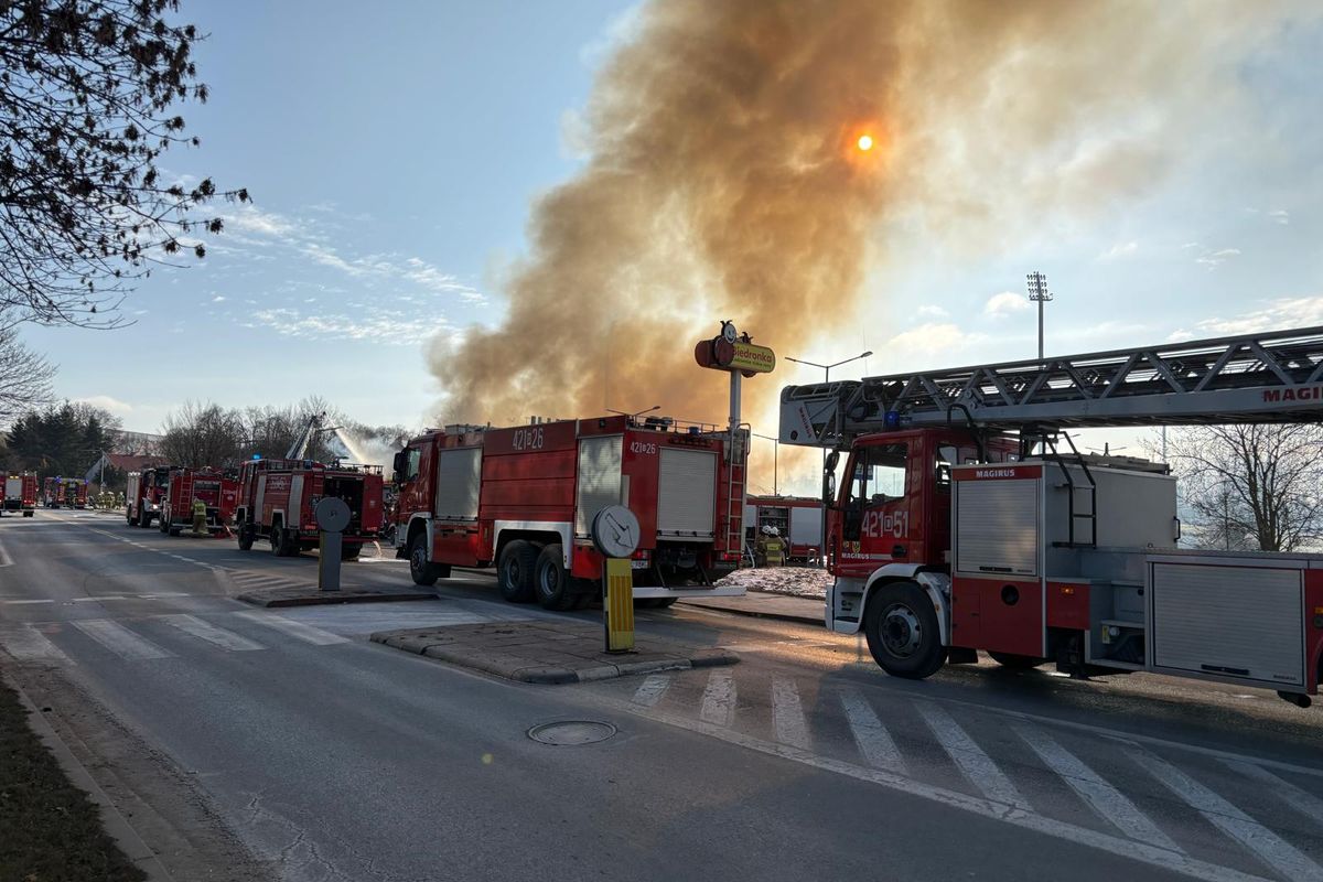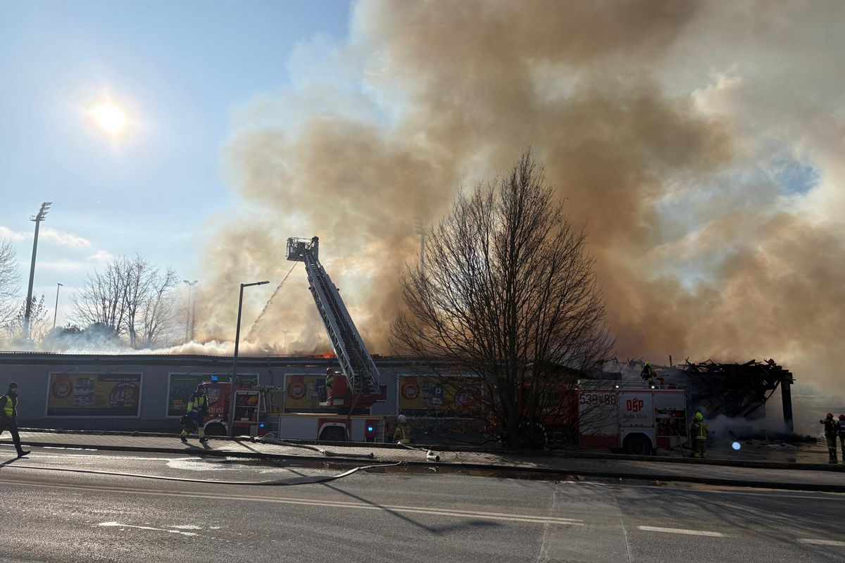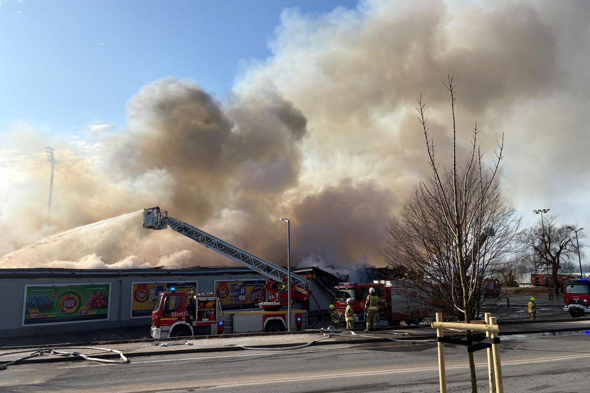 Ogromny pożar Biedronki w Polkowicach. 20 zastępów straży w akcji