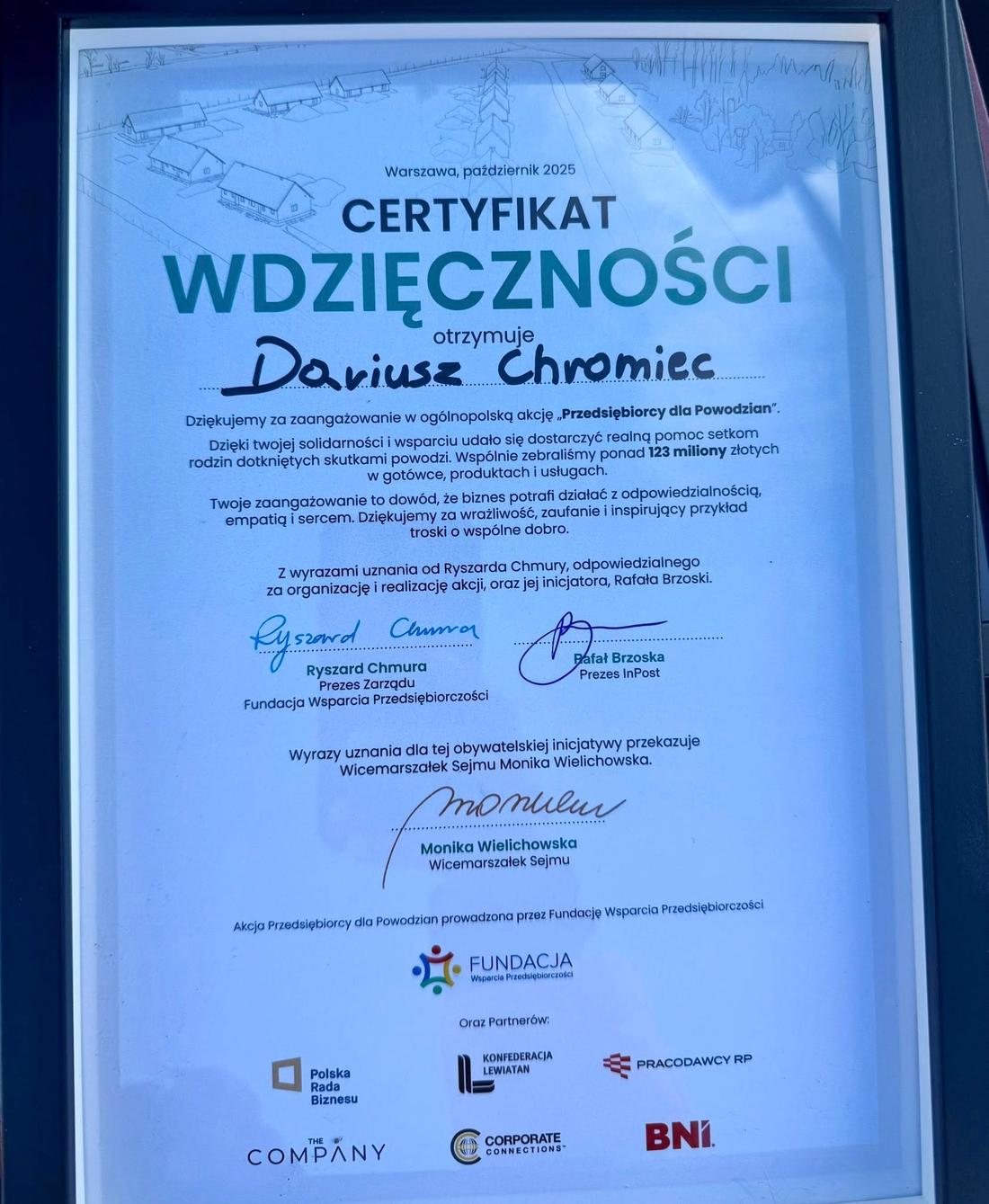 – Dziś piszemy nowy rozdział historii naszego miasta – powiedział Dariusz Chromiec, burmistrz Stronia Śląskiego. – Na miejscu bólu i zniszczenia powstało coś niezwykłego – osiedle „Z Widokiem na Przyszłość”. To symbol naszej siły, solidarności i wiary w drugiego człowieka. Wrześniowa powódź odebrała wielu rodzinom wszystko. Ale dzięki ogromnym sercom ludzi dobrej woli – ponad 300 przedsiębiorcom z całej Polski, Fundacji Rafała Brzoski, a także firmie Riser, która w rekordowym czasie postawiła te domy – dziś możemy powiedzieć z dumą: udało się. To jedyne w Polsce przedsięwzięcie na taką skalę – owoc współpracy przedsiębiorców, samorządu i naszej lokalnej społeczności. Razem pokazaliśmy, że z nadziei można zbudować przyszłość. Dziękuję wszystkim, którzy nie zostawili nas samych. Dziękuję tym, którzy pomagali, wspierali, wierzyli…To Wasze dzieło! Niech to osiedle będzie miejscem radości, miłości i nowego początku. Bo Stronie Śląskie to nie tylko miasto – to wspólnota ludzi, którzy potrafią się podnieść po każdej burzy.