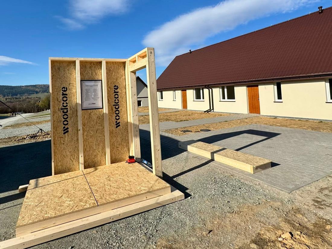 Generalnym wykonawcą inwestycji była firma Riser, która w technologii woodcorehouse , ekologicznej i pozwalającej na szybkie wznoszenie drewnianych konstrukcji wybudowała 12 budynków, dwa kolejne dobudowała gmina.