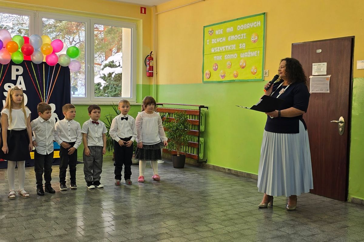 Uroczystość rozpoczęła dyrektorka placówki – Katarzyna Kowcz wszystkich serdecznie i podkreślając ważność tego momentu. Potem dzieci pokazały co potrafią – rodzice i opiekunki z przedszkola z duma patrzyły na występy artystyczne swoich podopiecznych. Były piosenki, recytowanie wierszyków i tańce. Dzieci przygotowywały się do tych występów pod okiem pań Iwony i Moniki.