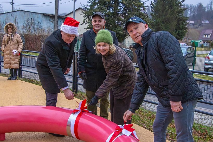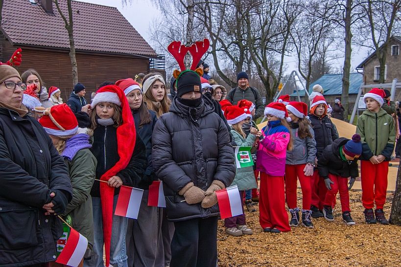 Nowy plac zabaw został uroczyście poświęcony przez księdza Ryszarda Pitę, a następnie odsłonięto pamiątkowe pierścienie olimpijskie – wyjątkowy hołd dla sportowców reprezentujących gminę na igrzyskach. Na uroczystości swój program artystyczny pokazali uczniowie Gminnego Zespołu Szkolno-Przedszkolnego oraz Zespół Wokalny Nutki Kawki. Były rymowanki o olimpijczykach, taniec mikołajkowy i świąteczne piosenki. A później już przyszedł czas na spotkanie ze Świętym Mikołajem i słodkie prezenty!