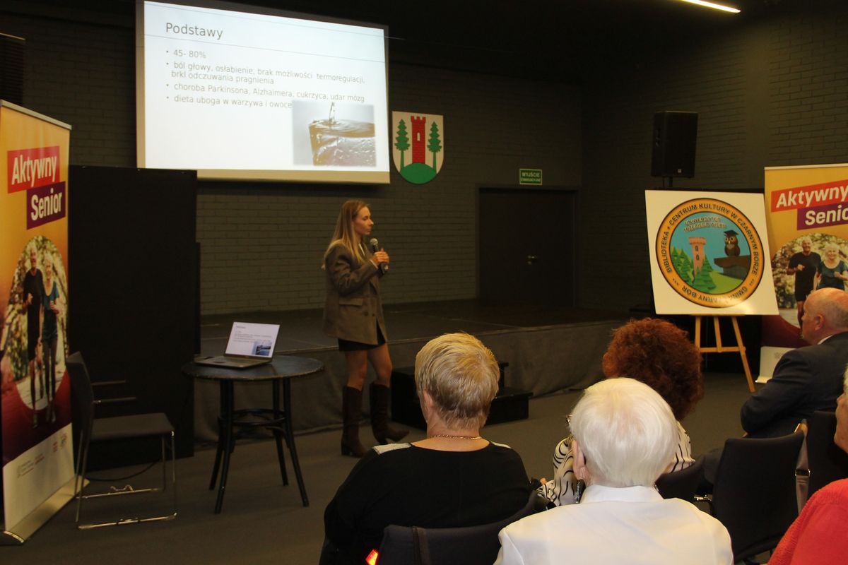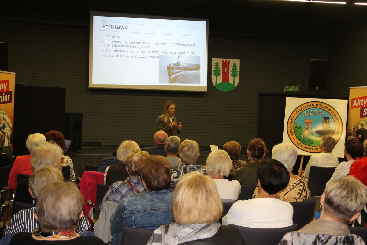 Wykład inauguracyjny wygłosiła Adriana Poros, dzieląc się niezwykle interesującym i ważnym – nie tylko dla seniorów – tematem: Rola prawidłowego nawadniania w funkcjonowaniu organizmu – przypomnienie, jak kluczowe dla zdrowia są codzienne nawyki.