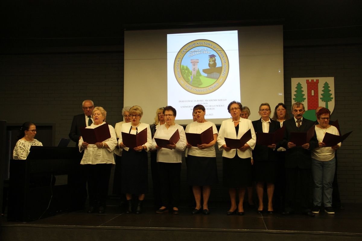 Uroczysta inauguracja kolejnego roku na Uniwersytecie Trzeciego Wieku w Czarnym Borze za nami. Seniorzy zaśpiewali hymn akademicki „Gaudeamus igitur” razem z chórem akademicki pod czujnym okiem i uchem Magdaleny Kawki.
