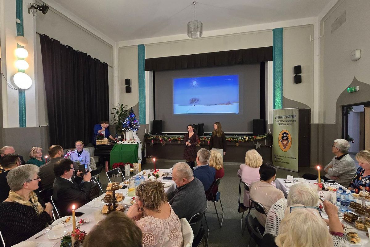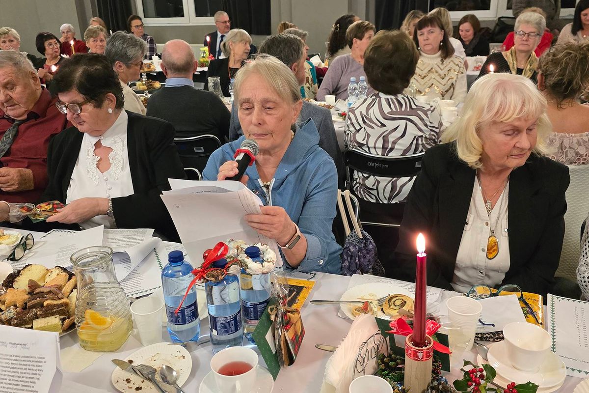 Reszta wieczoru upłynęła w iście rodzinnej atmosferze. Sala wypełniła się dźwiękami wspólnie śpiewanych kolęd, a czas umilały recytacje wierszy oraz barwne opowieści o bożonarodzeniowych tradycjach, które łączą pokolenia.