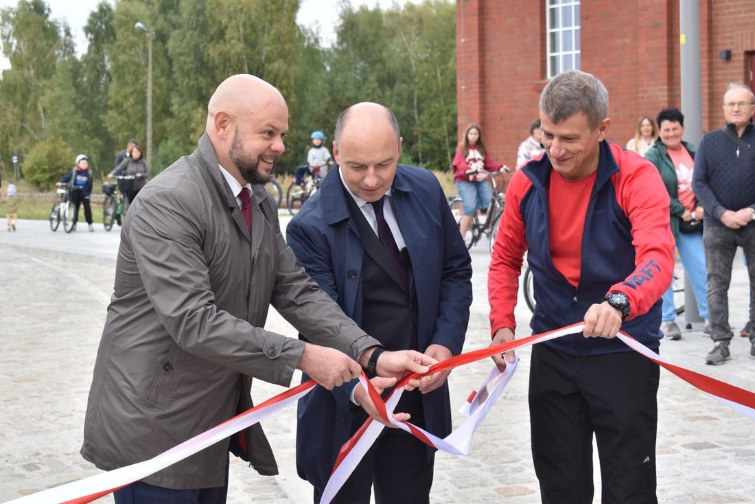 Wstęgę przecięli: Tomasz Kulczyński – burmistrz Chocianowa, Tymoteusz Myrda – radny Sejmiku Dolnośląskiego oraz Ryszard Bartosz – przewodniczący Rady Miejskiej w Chocianowie.