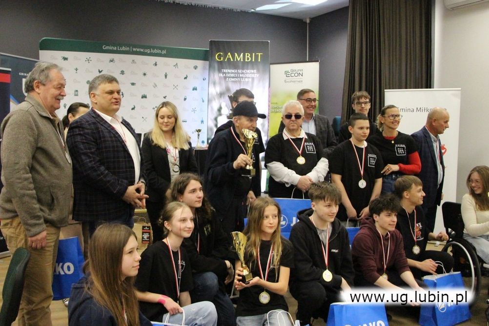 Szachiści z Gminy Lubin w składzie: Antoni Koop, Martyna Andrysiak, Karol Jagiełło, Julian Koop, Kamil Wiciak zdominowali rywalizację w kategorii juniorów plasując się na pierwszym miejscu.