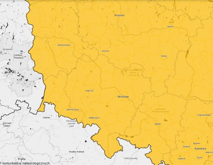 Ostrzeżenie obowiązuje od północy do godzin popołudniowych w niedzielę.